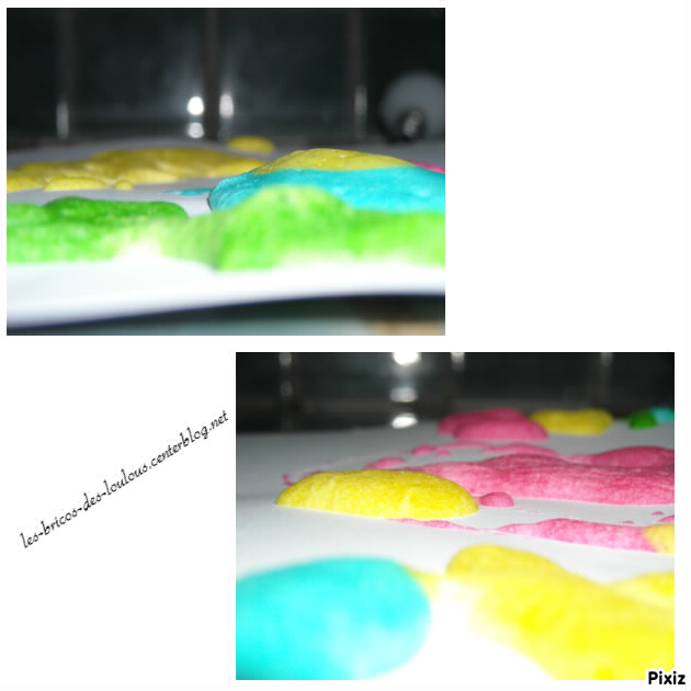 La recette est très simple : 1 cuillère à soupe de farine, 1 cuillère à soupe de sel fin, 1 cuillère à café de levure chimique, des colorants alimentaires (à peine quelques gouttes) et un peu d'eau. Il ne faut pas que la texture soit trop liquide, il faut qu'elle soit un peu épaisse.
