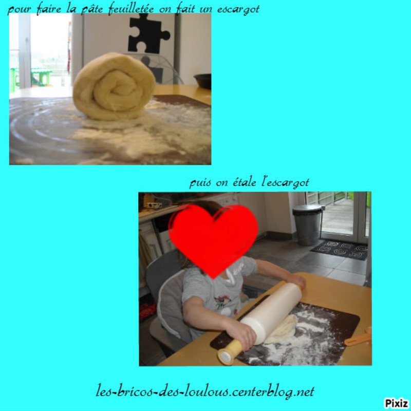 J'ai pris la recette du livre Thermomix "envie de dessert" sauf que, à part la pâte feuilletée, nous ne l'avons pas faîte au Thermomix, sinon la pauvre puce n'aurait pas vraiment participé !